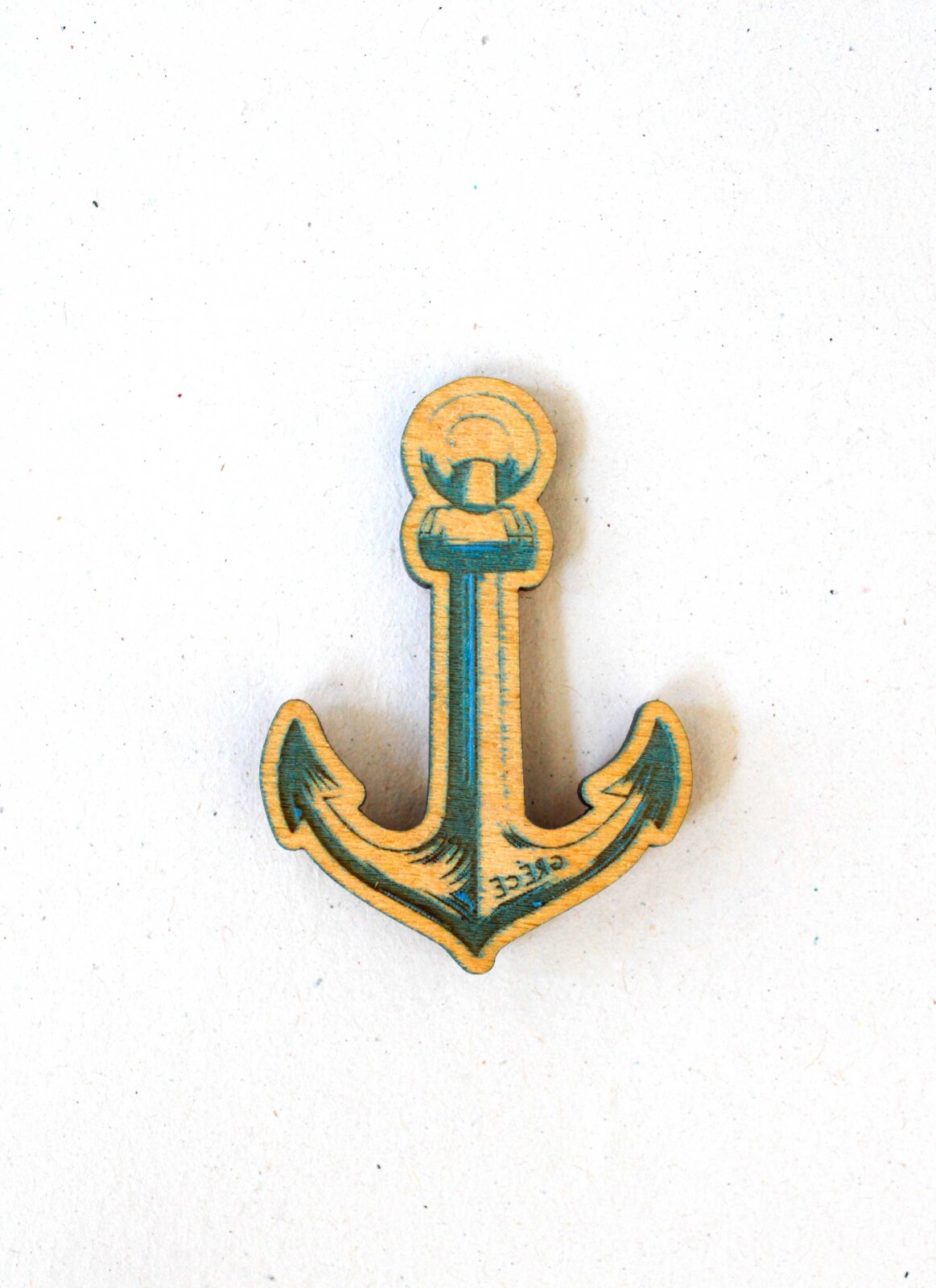 Ξύλινο μαγνητάκι άγκυρα χααγμένο με λέιζερ και ζωγραφιστό με χρώμα ΜΠΛΕ 5X7εκ.