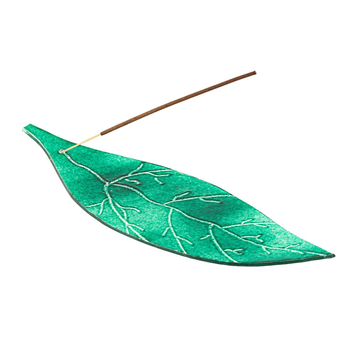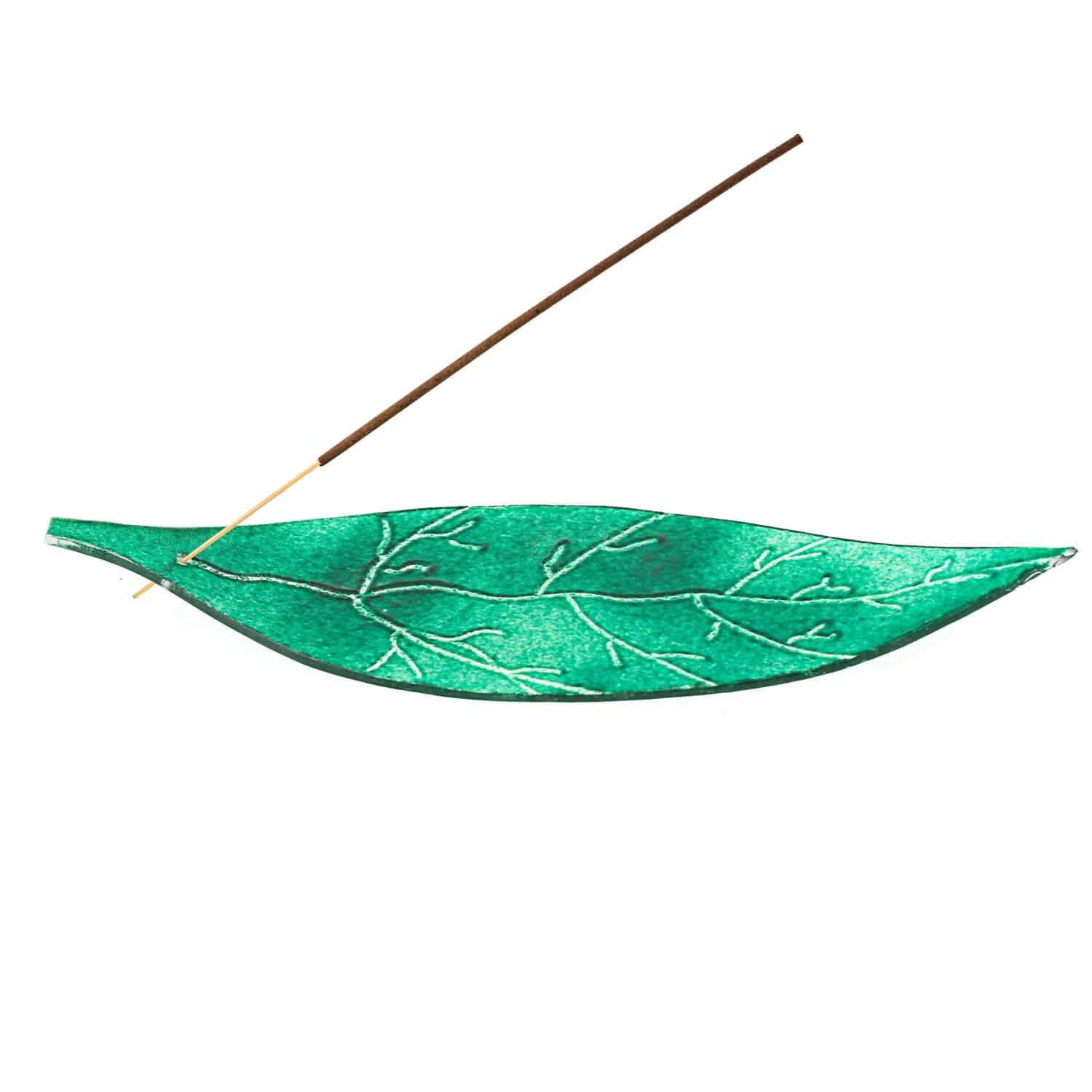 Χειροποίητη βάση για αρωματικά sticks σε σχήμα φύλλο 8X25cm. Το γυαλί είναι από βάση float γυαλί, χρωματιστά θραύσματα γιαλιού σε διαδιάφορα μεγέθη, ειδικά ζωγραφικά σμάλτα , ψημένα σε κλίβανο με υψηλές θερμοκρασίες που φτάνουν τους 825 βαθμούς κελσίου. Τα sticks ΔΕΝ περιέχονται.
