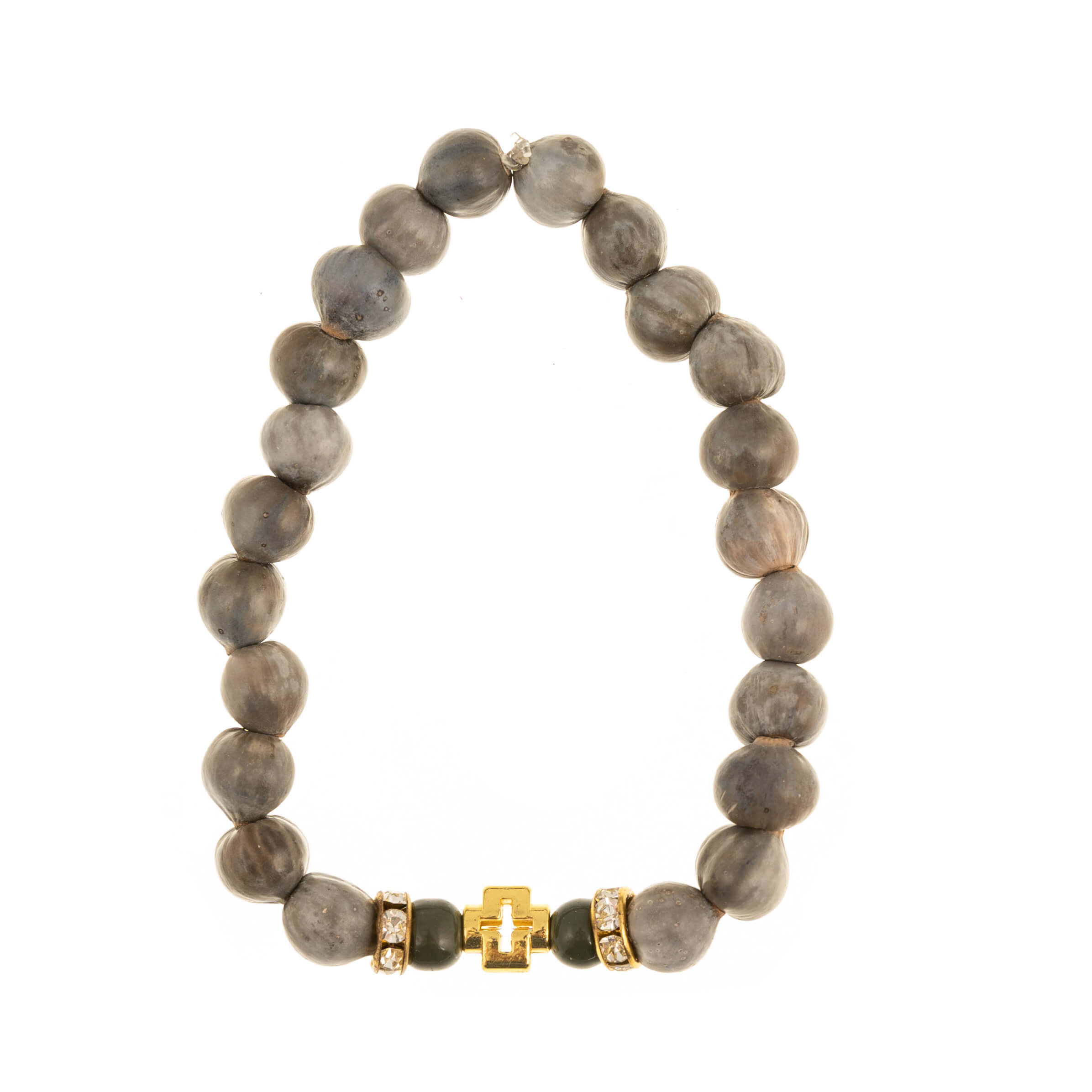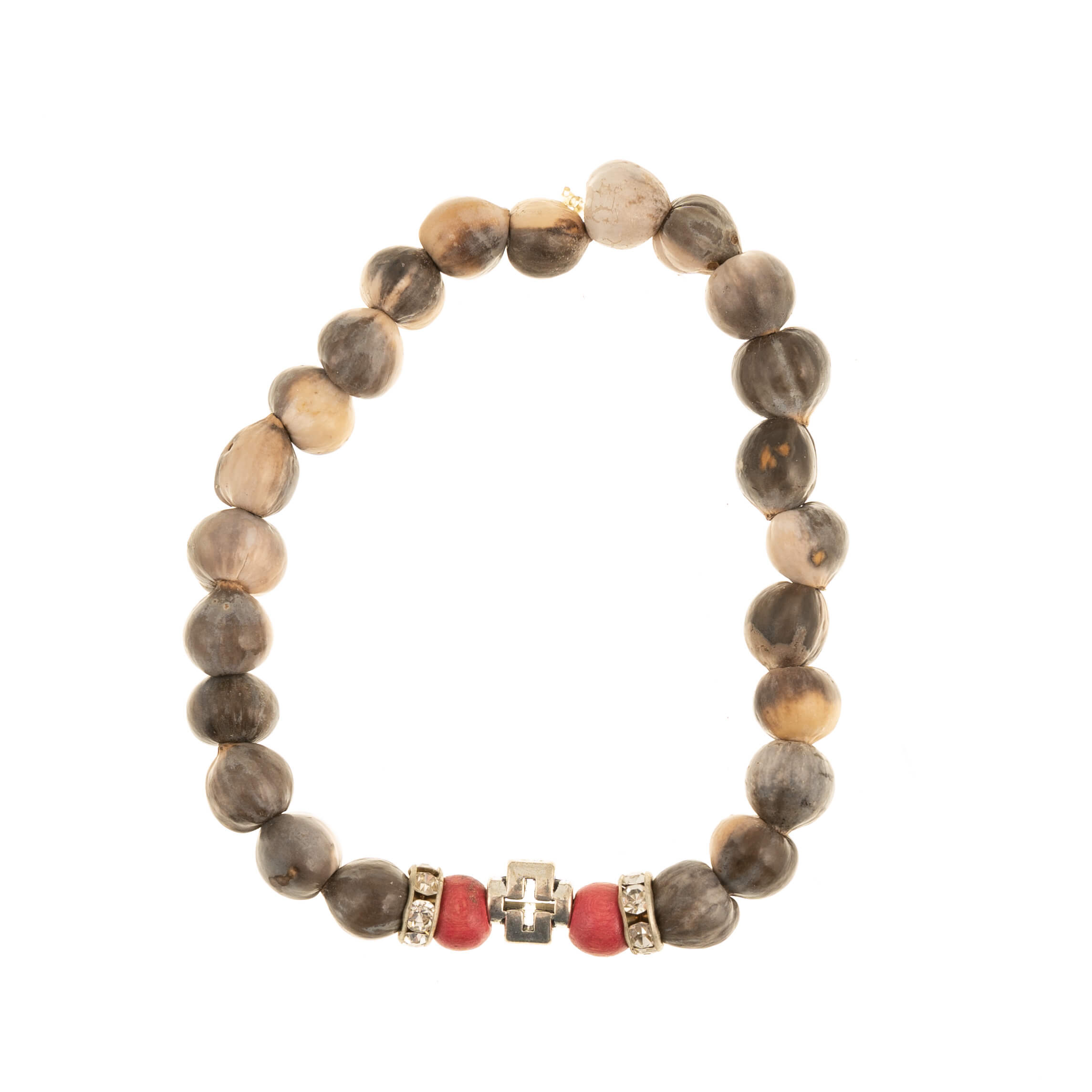 Χειροποίητο βραιόλι με χάντρες από καρπούς του δέντρου Δάκρυα της Παναγίας και με διακοσμητικές χάντρες και σταυρουδάκι.